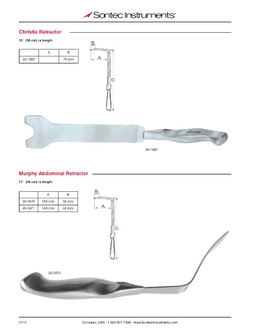 Christie Retractor 15˝ (38 cm) in length A B 20-1887 75 mm 20-1887 Murphy Abdominal Retractor 11˝ (28 cm) in length A B 20-1870 100 mm 32 mm 20-1871 100 mm 50 mm 20-1870 2110 Colorado, USA / 1.800.821.7496 / www.SontecInstruments.com