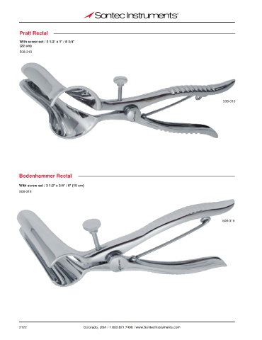 Pratt Rectal With screw set / 3 1/2" x 1" / 8 3/4" (22 cm) 508-310 508-310 Bodenhammer Rectal With screw set / 3 1/2" x 3/4" / 6" (15 cm) 508-315 508-315 2122 Colorado, USA / 1.800.821.7496 / www.SontecInstruments.com