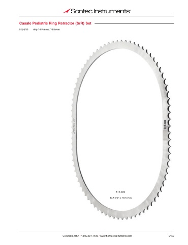 Casale Pediatric Ring Retractor (SrR) Set 516-830 ring 14.5 mm x 18.5 mm 516-830 14.5 mm x 18.5 mm Colorado, USA / 1.800.821.7496 / www.SontecInstruments.com 2159