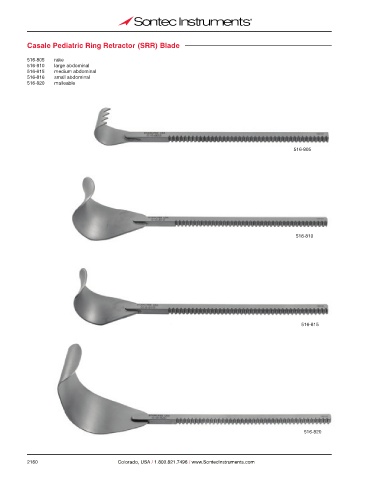 Casale Pediatric Ring Retractor (SRR) Blade 516-805 rake 516-810 large abdominal 516-815 medium abdominal 516-816 small abdominal 516-820 malleable 516-805 516-810 516-815 516-820 2160 Colorado, USA / 1.800.821.7496 / www.SontecInstruments.com