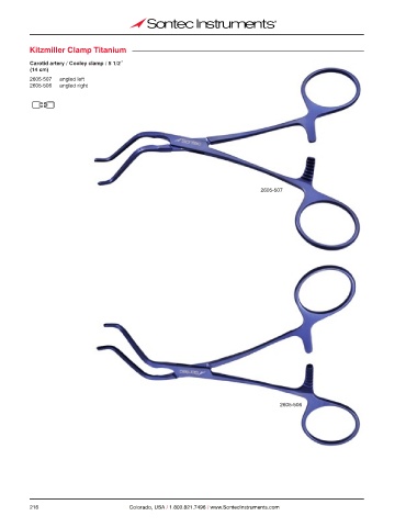 Kitzmiller Clamp Titanium Carotid artery / Cooley clamp / 5 1/2˝ (14 cm) 2605-507 angled left 2605-506 angled right 2605-507 2605-506 216 Colorado, USA / 1.800.821.7496 / www.SontecInstruments.com