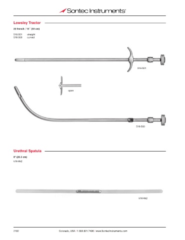 Lowsley Tractor 22 french / 13˝ (33 cm) 516-501 straight 516-500 curved 516-501 open 516-500 Urethral Spatula 8" (20.3 cm) 516-652 516-652 2182 Colorado, USA / 1.800.821.7496 / www.SontecInstruments.com