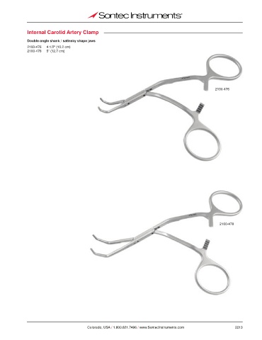 Internal Carotid Artery Clamp Double-angle shank / satinsky shape jaws 2100-476 4 1/2" (10.2 cm) 2100-478 5" (12.7 cm) 2100-476 2100-478 Colorado, USA / 1.800.821.7496 / www.SontecInstruments.com 2213