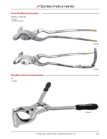 Serra Modified Emasculator Curved / 14˝ (35.5 cm) 1100-903 1100-905 w/ ratchet 1100-903 1100-905 Bloodless Bovine Emasculatome 16" 1100-908 1100-908 Colorado, USA / 1.800.821.7496 / www.SontecInstruments.com 2223