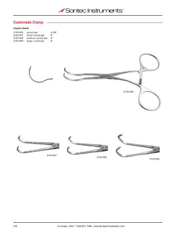 Castenada Clamp Angled shank 2100-906 spoon jaw 4 3/4" 2100-907 small curved jaw 6" 2100-908 medium curved jaw 6" 2100-909 large curved jaw 6" 2100-906 2100-907 2100-908 2100-909 226 Colorado, USA / 1.800.821.7496 / www.SontecInstruments.com
