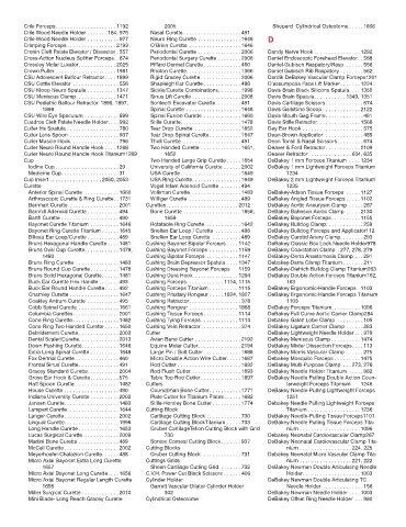 Cobb Spinal Curette .............. 1661 Cushing Rongeur ................. 1868 DeBakey Forceps Titanium. . . . . . . . . . 1096