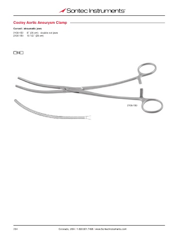 Cooley Aortic Aneurysm Clamp Curved / atraumatic jaws 2100-152 8˝ (20 cm) double cvd jaws 2100-150 10 1/2˝ (26 cm) 2100-150 234 Colorado, USA / 1.800.821.7496 / www.SontecInstruments.com