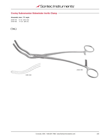 Cooley Subramanian Sidewinder Aortic Clamp Atraumatic Jaws / 70° angle 2100-143 6 1/2˝ (16.5 cm) 2100-145 10 1/2˝ (26 cm) 2100-145 side view Colorado, USA / 1.800.821.7496 / www.SontecInstruments.com 235