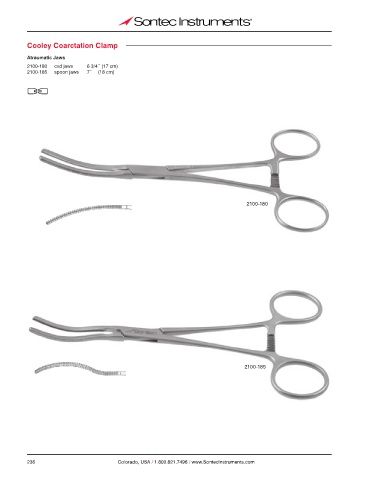 Cooley Coarctation Clamp Atraumatic Jaws 2100-180 cvd jaws 6 3/4˝ (17 cm) 2100-185 spoon jaws 7˝ (18 cm) 2100-180 2100-185 236 Colorado, USA / 1.800.821.7496 / www.SontecInstruments.com