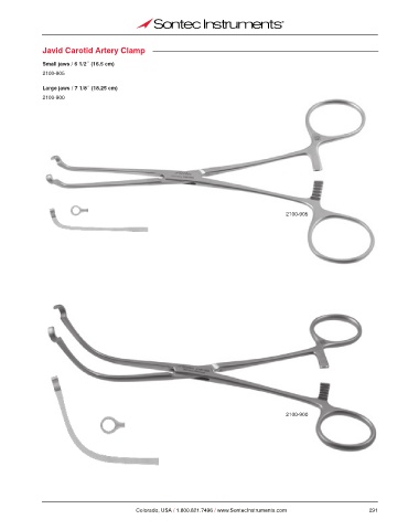 Javid Carotid Artery Clamp Small jaws / 6 1/2˝ (16.5 cm) 2100-905 Large jaws / 7 1/8˝ (18.25 cm) 2100-900 2100-905 2100-900 Colorado, USA / 1.800.821.7496 / www.SontecInstruments.com 291