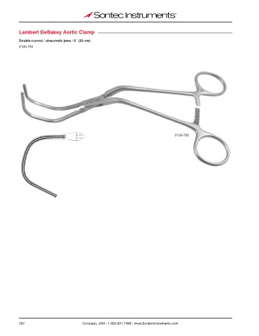 Lambert DeBakey Aortic Clamp Double-curved / atraumatic jaws / 8˝ (20 cm) 2100-730 2100-730 292 Colorado, USA / 1.800.821.7496 / www.SontecInstruments.com