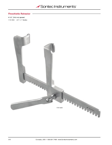 Finochietto Retractor 6 1/2˝ (16.5 cm) spread 1101-500 3/4˝ x 1˝ blades 1101-500 316 Colorado, USA / 1.800.821.7496 / www.SontecInstruments.com