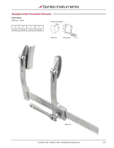 Shanghai Infant Finochietto Retractor Swivel blades 2500-210 infant a b c d 12 mm 40 mm 115 mm 85 mm 2500-210 Colorado, USA / 1.800.821.7496 / www.SontecInstruments.com 319
