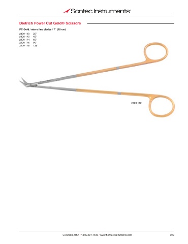 Dietrich Power Cut Gold® Scissors PC Gold / micro fine blades / 7˝ (18 cm) 2400-140 25° 2400-142 45° 2400-144 60° 2400-146 90° 2400-148 125° 2400-142 Colorado, USA / 1.800.821.7496 / www.SontecInstruments.com 399
