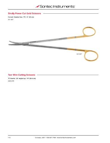 Strully Power Cut Gold Scissors Curved / beaded tips / PC / 8˝ (20 cm) 421-637 421-637 Tavr Wire Cutting Scissors TC inserts / 25° angled up / 10" (25.4 cm) 2400-478 410 Colorado, USA / 1.800.821.7496 / www.SontecInstruments.com
