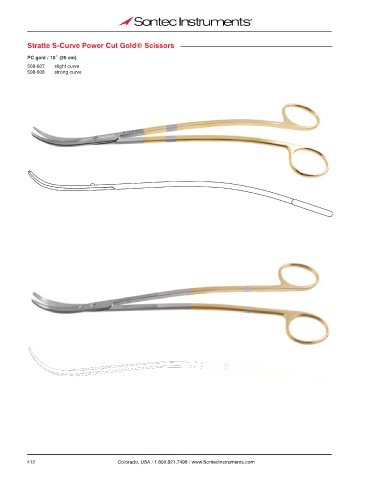 Stratte S-Curve Power Cut Gold® Scissors PC gold / 10˝ (25 cm) 508-607 slight curve 508-608 strong curve 508-607 508-608 412 Colorado, USA / 1.800.821.7496 / www.SontecInstruments.com