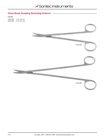 Olsen-Baum Grasping Dissecting Scissors Curved 2400-288 7 1/4" (18 cm) 2400-289 9 1/4" (24 cm) 2400-288 2400-289 444 Colorado, USA / 1.800.821.7496 / www.SontecInstruments.com