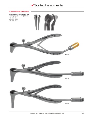 Killian Nasal Speculum Fixation screw / with universal fiber optic light guide / 5 1/4˝ (13.5 cm) 465-321 35mm 465-322 50mm 465-323 75mm 465-321 465-322 465-323 Colorado, USA / 1.800.821.7496 / www.SontecInstruments.com 465