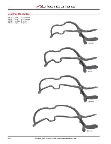Jennings Mouth Gag 485-510 infant 3 1/2" spread 485-512 small 4 1/4" spread 485-514 medium 5" spread 485-516 large 6" spread 485-510 485-512 485-514 485-516 478 Colorado, USA / 1.800.821.7496 / www.SontecInstruments.com