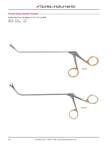 Frontal Sinus Giraffe Forceps Double Action Cup / 45 degress / 5 1/4’’ (13.5 cm) shaft 468-332 vertical 3 mm 468-333 horizontal 3 mm 468-332 468-333 524 Colorado, USA / 1.800.821.7496 / www.SontecInstruments.com