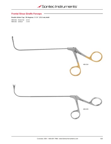 Frontal Sinus Giraffe Forceps Double Action Cup / 90 degress / 5 1/4’’ (13.5 cm) shaft 468-334 horizontal 2 mm 468-335 vertical 2 mm 468-334 468-335 Colorado, USA / 1.800.821.7496 / www.SontecInstruments.com 525