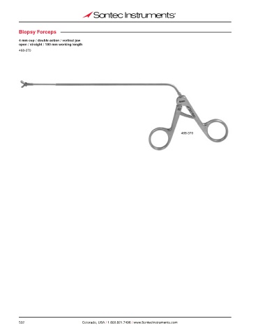 Biopsy Forceps 4 mm cup / double action / vertical jaw open / straight / 180 mm working length 468-370 468-370 532 Colorado, USA / 1.800.821.7496 / www.SontecInstruments.com