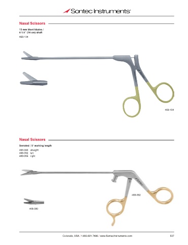 Nasal Scissors 13 mm blunt blades / 6 1/4˝ (16 cm) shaft 468-104 468-104 Nasal Scissors Serrated / 5" working length 468-090 straight 468-092 left 468-094 right 468-092 468-090 Colorado, USA / 1.800.821.7496 / www.SontecInstruments.com 537