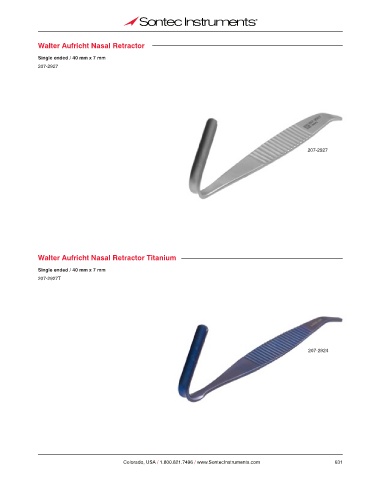 Walter Aufricht Nasal Retractor Single ended / 40 mm x 7 mm 207-2927 207-2927 Walter Aufricht Nasal Retractor Titanium Single ended / 40 mm x 7 mm 207-2927T 207-2924 Colorado, USA / 1.800.821.7496 / www.SontecInstruments.com 631