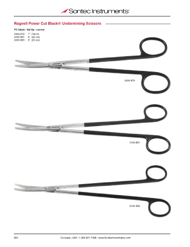 Ragnell Power Cut Black® Undermining Scissors PC black / flat tip / curved 2400-879 7˝ (18cm) 2400-881 8˝ (20 cm) 2400-883 9˝ (23 cm) 2400-879 2400-881 2400-883 684 Colorado, USA / 1.800.821.7496 / www.SontecInstruments.com