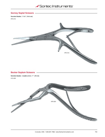 Gorney Septal Scissors Serrated blades / 7 3/4˝ (19.5 cm) 475-310 475-310 Becker Septum Scissors Serrated blades / double action / 7˝ (18 cm) 475-320 475-320 Colorado, USA / 1.800.821.7496 / www.SontecInstruments.com 705