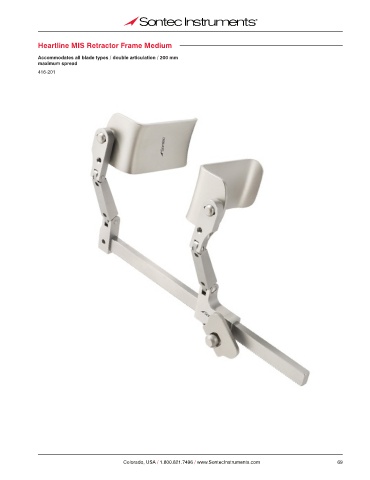 Heartline MIS Retractor Frame Medium Accommodates all blade types / double articulation / 200 mm maximum spread 416-201 Colorado, USA / 1.800.821.7496 / www.SontecInstruments.com 69
