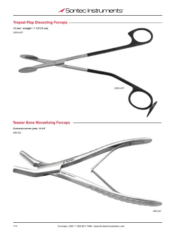 Trepsat Flap Dissecting Forceps 15 mm / straight / 7 1/2"(19 cm) 2200-437 2200-437 Tessier Bone Morselizing Forceps Concave/convex jaws / 8 3/4" 468-521 468-521 714 Colorado, USA / 1.800.821.7496 / www.SontecInstruments.com