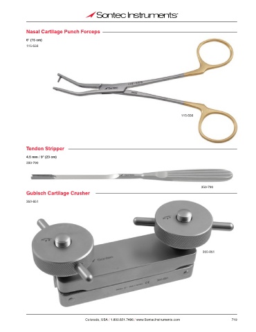 Nasal Cartilage Punch Forceps 6" (15 cm) 115-556 115-556 Tendon Stripper 4.5 mm / 9" (23 cm) 350-790 350-790 Gubisch Cartilage Crusher 350-851 350-851 Colorado, USA / 1.800.821.7496 / www.SontecInstruments.com 719