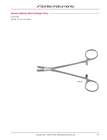 Sheehy Gelfoam Mini Cartilage Press 5" (12.7 cm) 468-533 12 mm x 16 mm plate 468-533 Colorado, USA / 1.800.821.7496 / www.SontecInstruments.com 721
