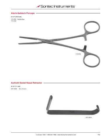Aiach-Gubisch Forceps 6 1/4" (15.9 cm) 115-553 flexible tips 115-554 115-554 Aufricht Daniel Nasal Retractor 4 1/4" (11 cm) 207-2929 50 x 10 mm 207-2929 Colorado, USA / 1.800.821.7496 / www.SontecInstruments.com 759