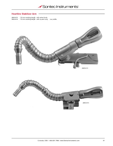 Heartline Stabilizer Arm 2800-813 170 mm working length with swivel body 2800-814 170 mm working length with square body low profile 2800-813 2800-814 Colorado, USA / 1.800.821.7496 / www.SontecInstruments.com 81
