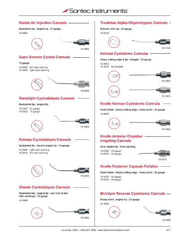 Spatulated tip / angled tip / one front & two McIntyre Reverse Cystotome Cannula