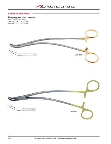 Stratte Needle Holder TC searrated / light weight / suggested suture size 4-0 and smaller 2300-486L left 9˝ (23 cm) 2300-486R right 9˝ (23 cm) 2300-486R 2300-486L 994 Colorado, USA / 1.800.821.7496 / www.SontecInstruments.com